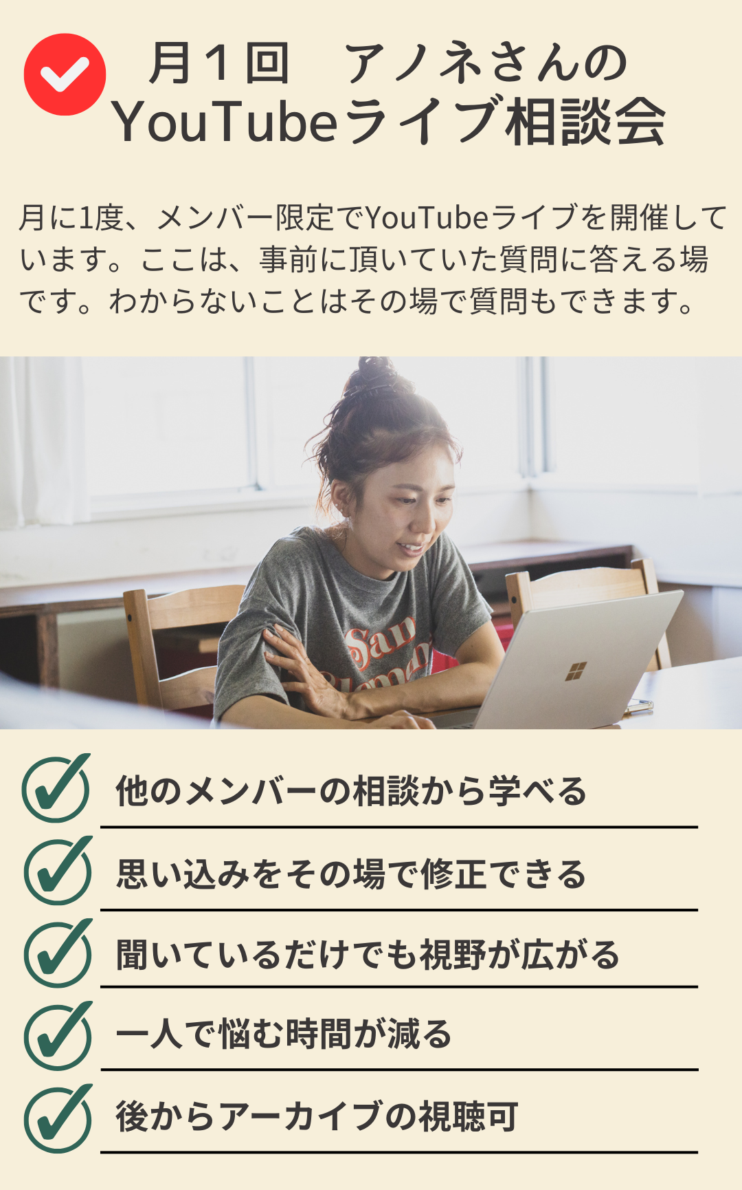 いいえ。アノネメンバーズは、売上を保証する講座ではありません。正しい順序で進み、売れやすい状態をつくるためのトレーニングジムです。思考と行動が変われば、結果はついてきます。