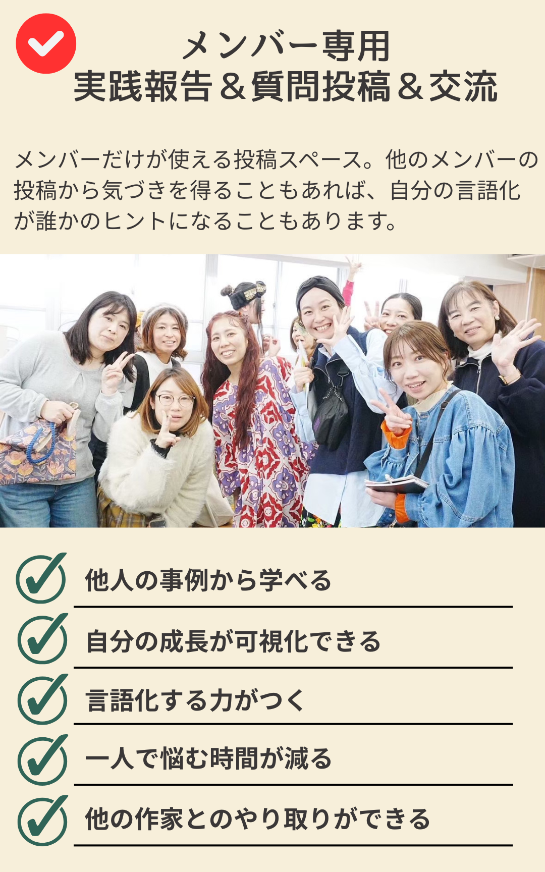 メンバー同士が交流できる「メンバー投稿」の場は、交流の場でもあります。