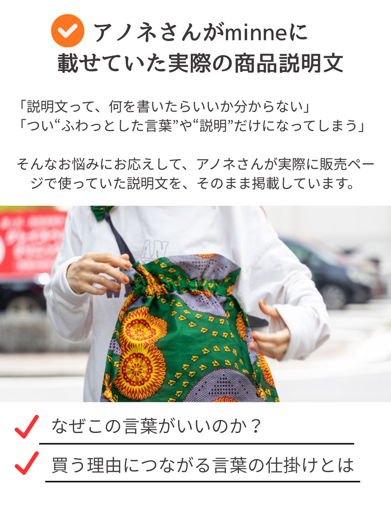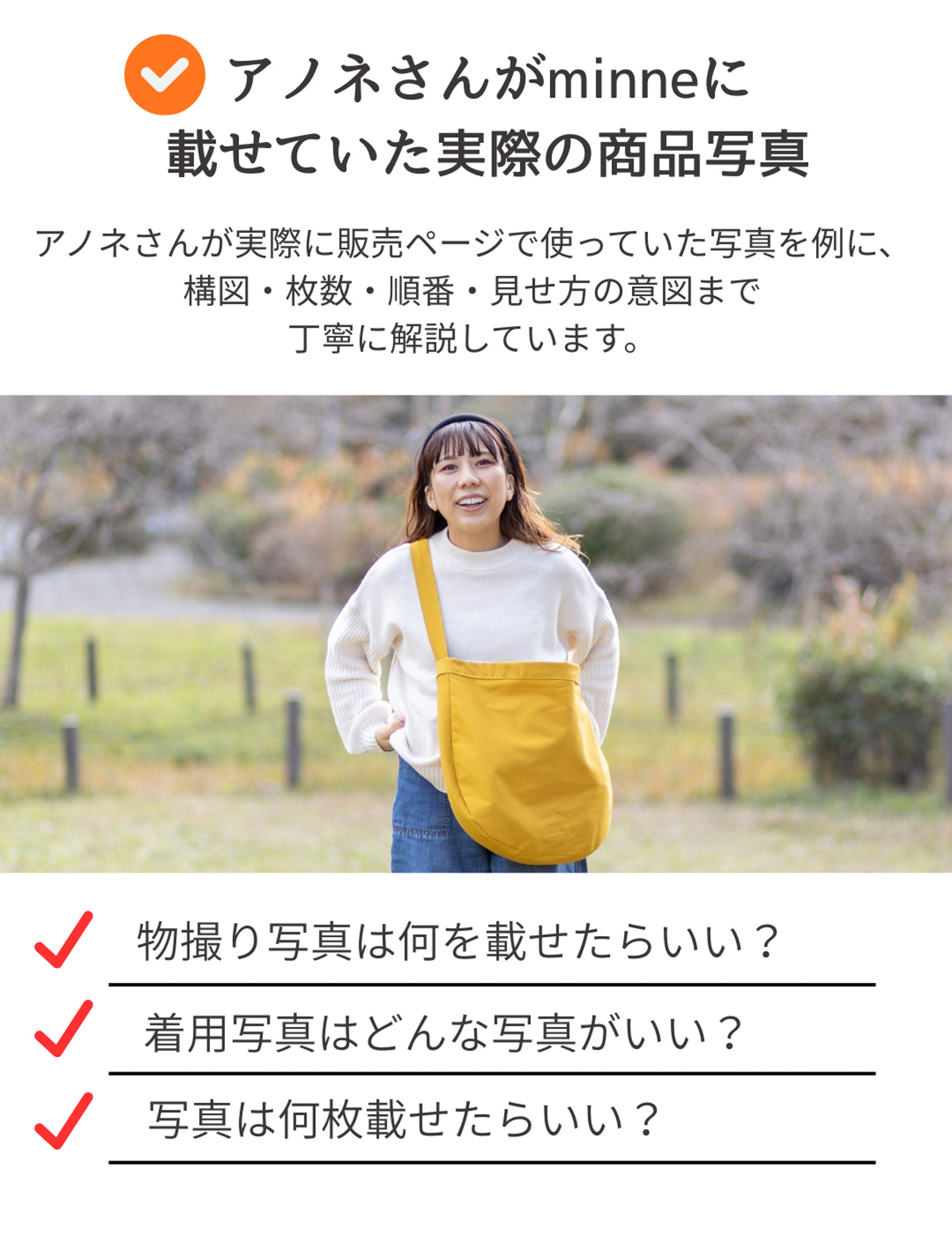 他にも、アノネさんが実際にminneで載せてた「写真」や「文章」の事例も見れます